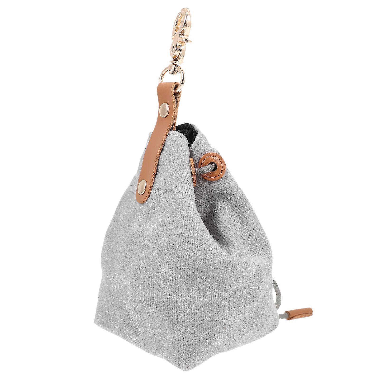Canvas Treat Holder Portable Pet Food Storage Bag Grey Color Wear-resistant Design 11x7x7cm Outdoor Activities 1Pack