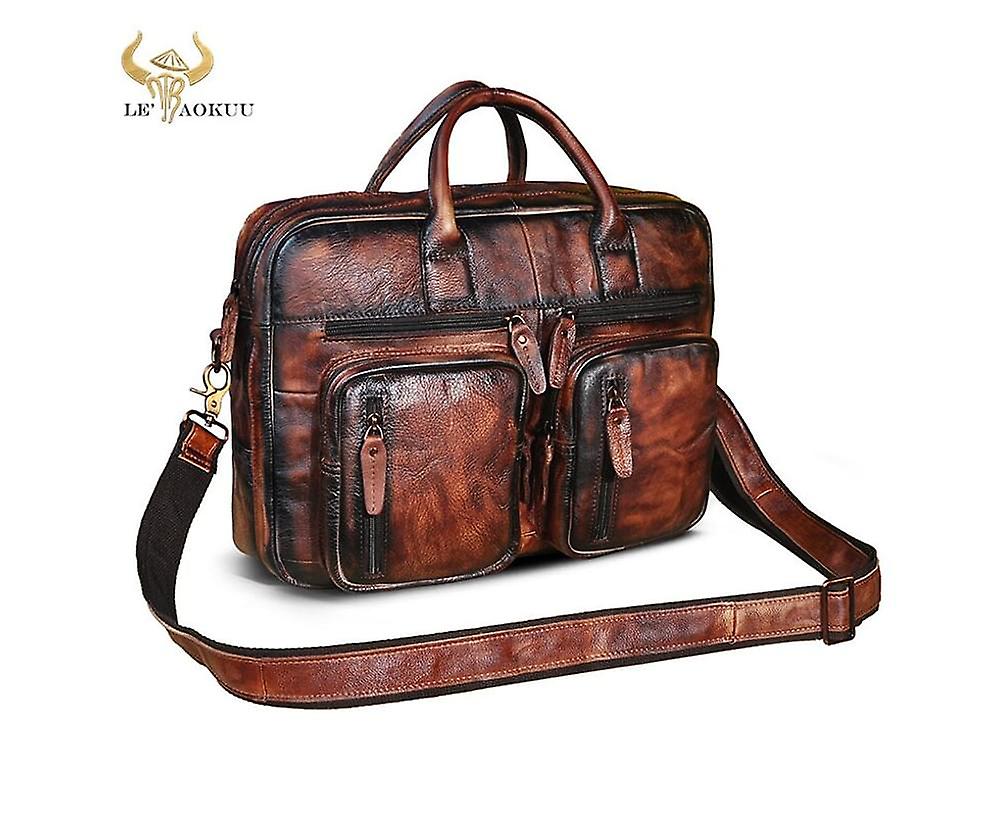 Canvas+natural Leather Antique Design Business Travel Briefcase Laptop Attache Messenger Bag Tote Portfolio For Men Male 9911 - Wine1