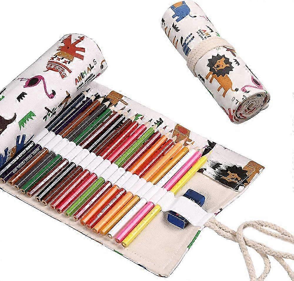Canvas Pencil Bag, 48 Holes Pencil Pouch, Animal Pattern Pencil Case, Roll Pencil Cases, Multi-Purpose Colored Pencil Bag for Artists