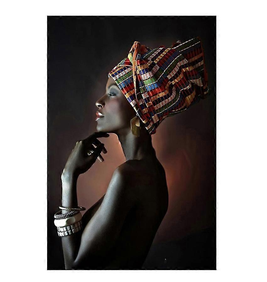 Canvas Painting Wall Art African Woman Indian Headband Portrait Picture Home Decor Poster No Frame