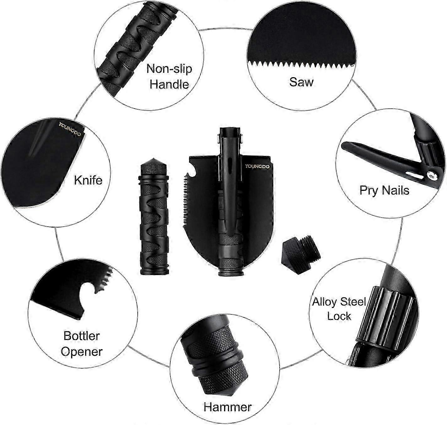 Multifunction Shovel for Camping Survival Hiking and Gardening - Folding Shovel + 2 Handles