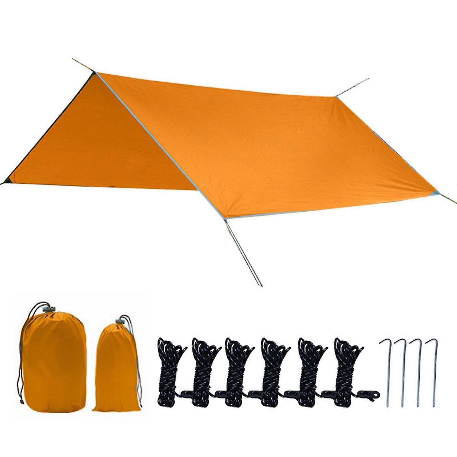 Camping Tarp Watertight Hammock Tent Tarp Tarpaulin Shelter Sun Block Sunshade Awning for Camping Hiking Outdoor orange color