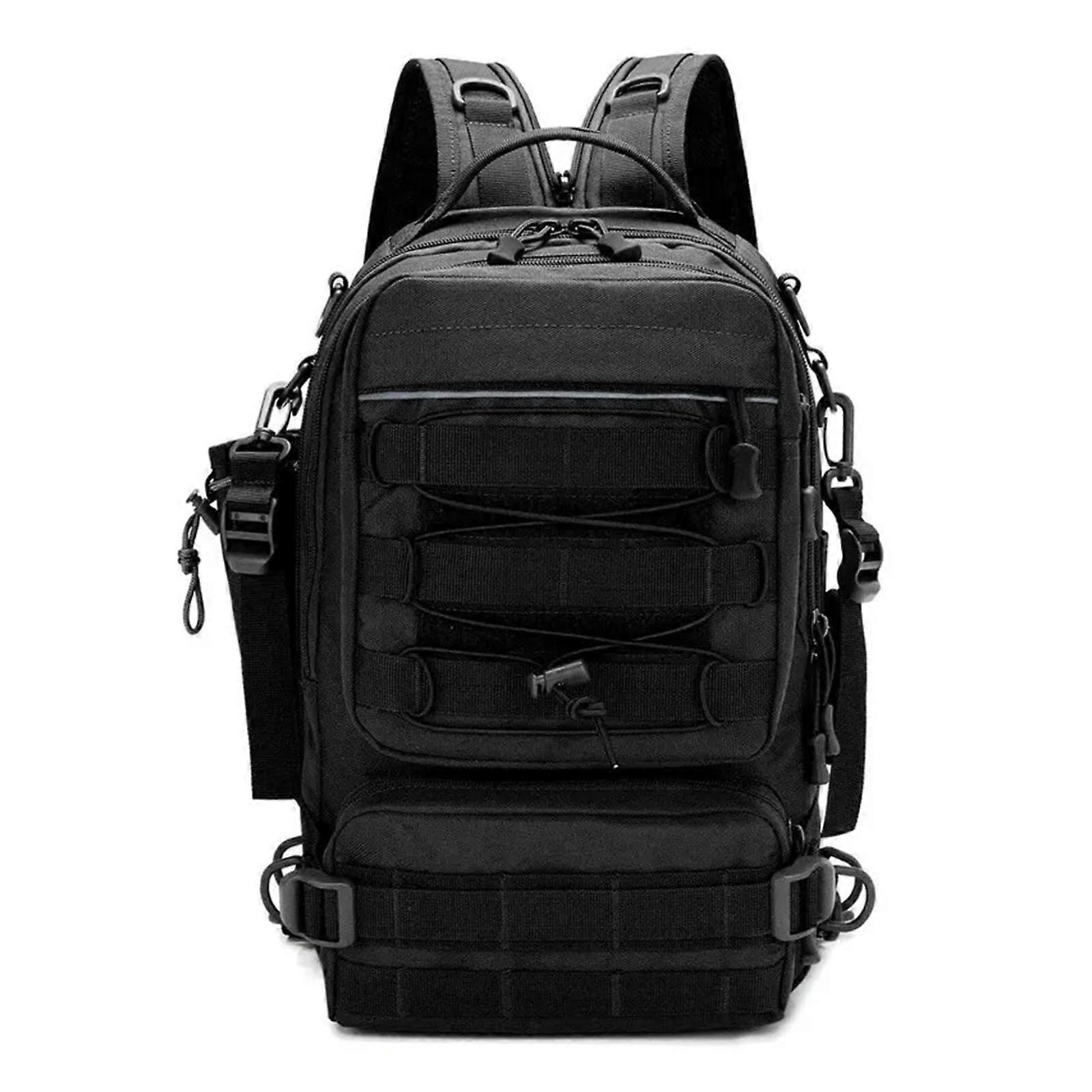 Camping Backpack Fishing Tackle Storage Bag 50L Black Outdoors Shoulder Pack with Rod Holder for Hiking and Hunting