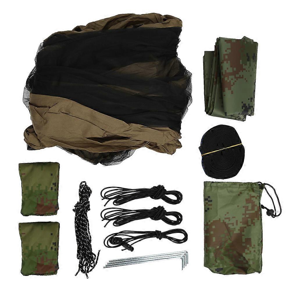 1、The hammock adopt quality nylon material, tear resistant with reinforced stitching and knotting. 2、Excellent waterproof, wear resistant and puncture resistant, can be kept dry in any weather. 3、Lightweight, easy to instal and use, no complicated knots to learn. 4、With canopy, sun-proof, provide generous protection from wind, rain and sun. 5、Suitable for outdoor using, such as camping, hiking, etc. 1 x Canopy1 x Hammock4 x Stake2 x Wind rope4 x Elastic rope1 x Elastic rope with buckle1 x Fixing band3 x Storage bag1 x Instruction Item type: Hammock Canopy Set  Condition: 100% brand newMaterial: nylon Weight: Approx. 1085gColor: army greenHammock size: Approx. 290x140cm/ 114.2x 55.1inCanopy size: Approx. 230x140cm/ 90.6x 55.1in