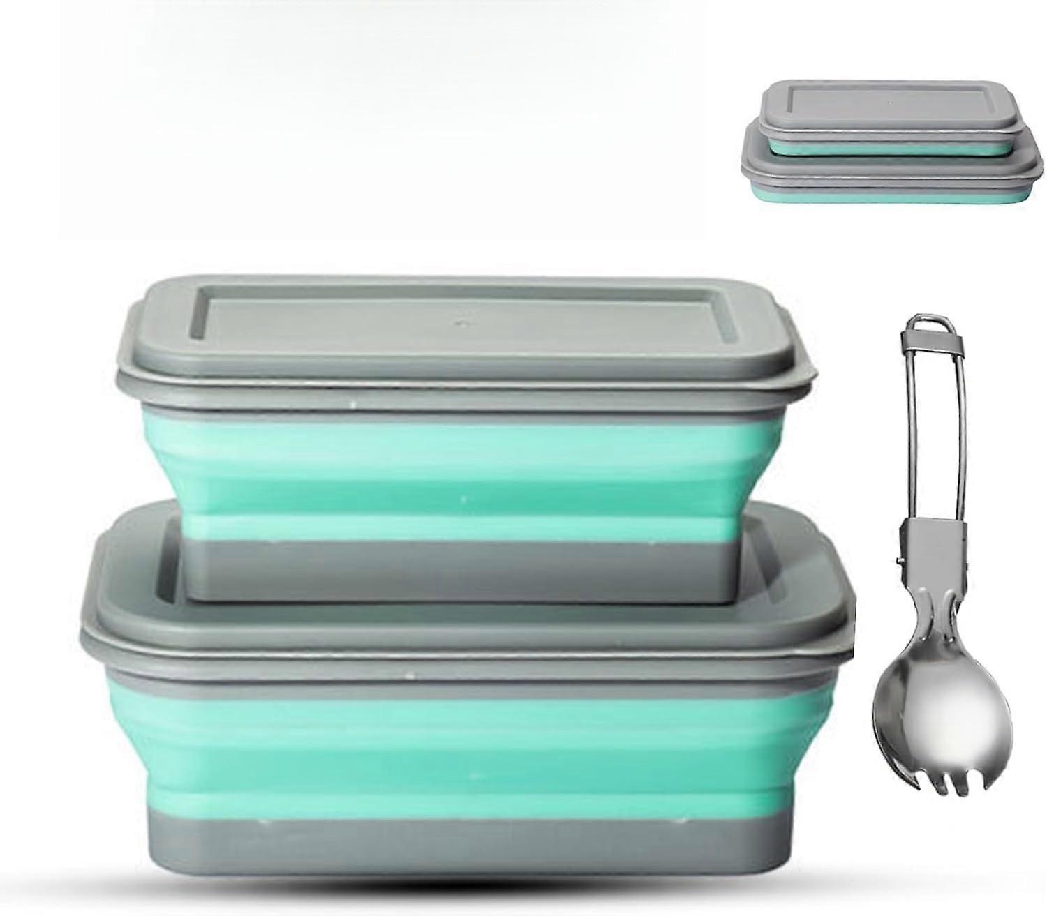 Camping Bowl, 2 Pieces Food Grade Silicone Collapsible Bowl Lunch Box Salad Bowl with Lid Expandable Food Storage Container Set (Blue - 400 + 750 ml)