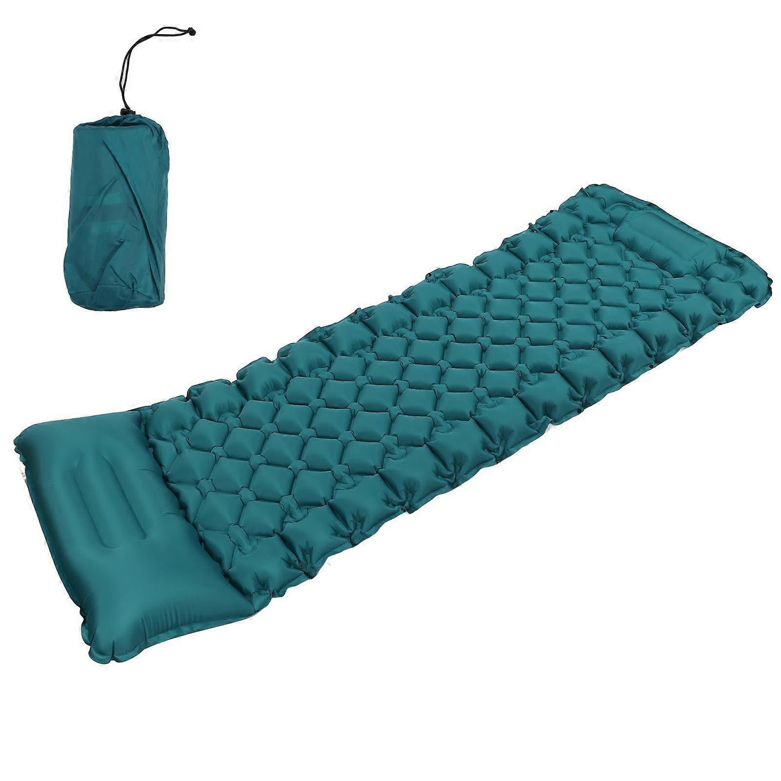 Camping Mattress Foot Operated Inflation Portable Ergonomic Design Curved Pillow Quadrilateral Peacock Blue Sleeping Pad