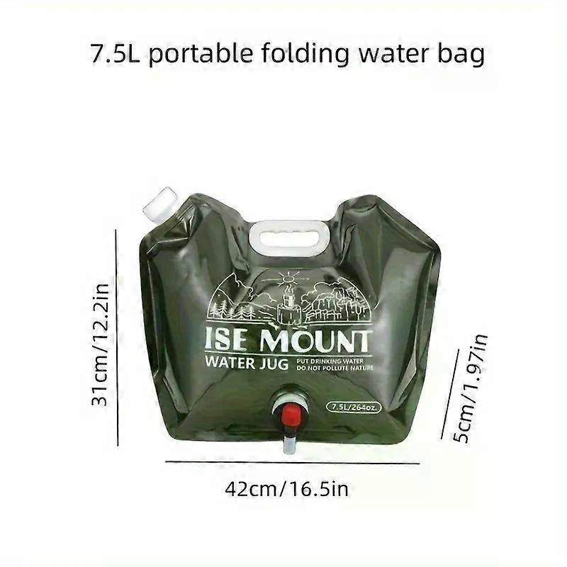 camping Outdoor Portable Water Bag 7.5l Large Capacity Water Bag W/ Tap Foldable Water Bag PET Material for Hiking Storage Container