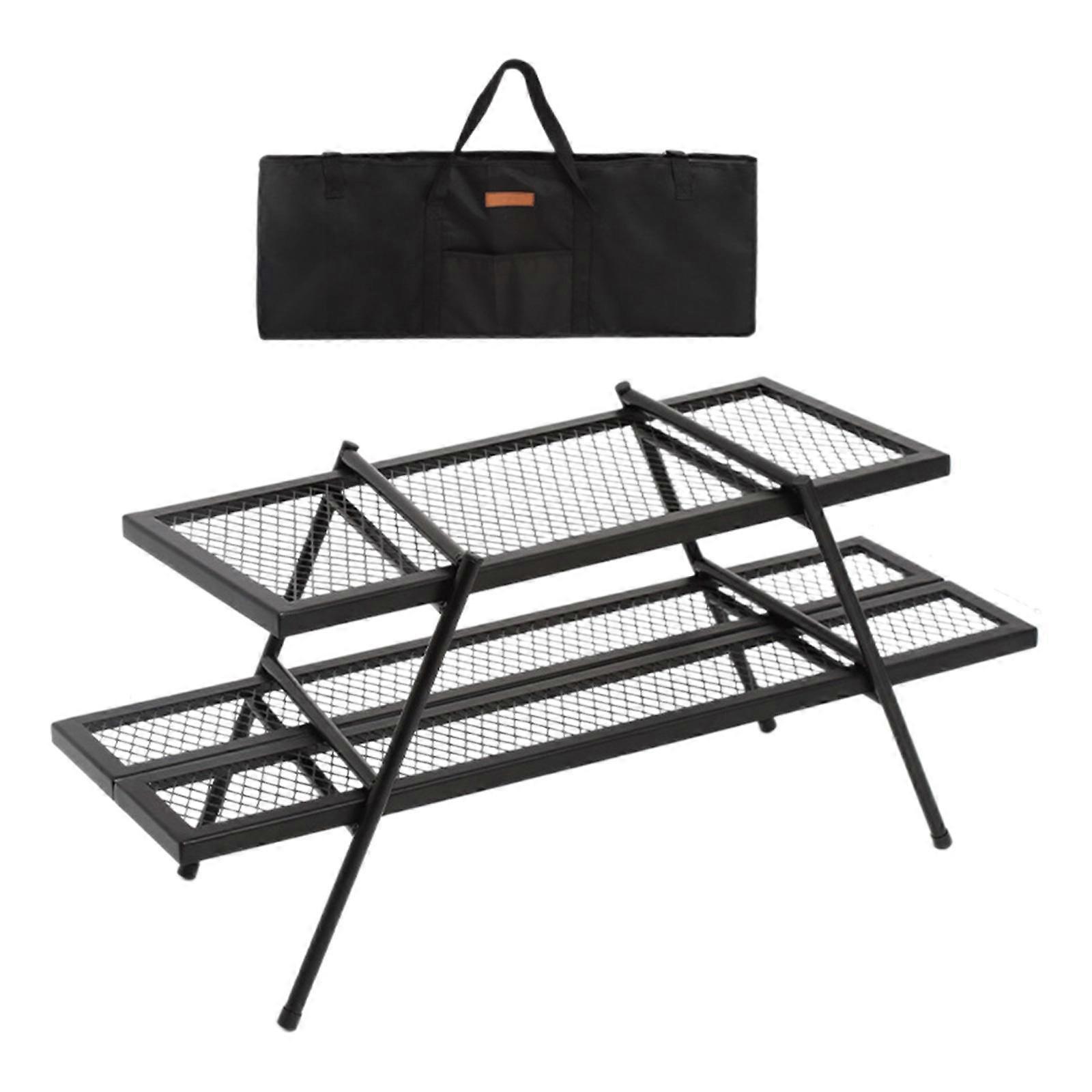 Description: Folding Camping Table: This folding camping table brings the kitchen cookware outdoors, providing ample storage space to accommodate camping kitchen equipment such as stoves or grill, cookware, and utensils.Material: This Outdoor Folding Table is made of iron material. It's reliable yet sturdy, with a strong load bearing capacity to meet various usage needs. The iron mesh tabletop ensues a long service life. Removable, features non slip table legs.Portable Design: Designed with portability in mind, this outdoor folding table is easy to carry and store, making it great for outdoor activities like camping and picnicking. Its compact design saves space when not in use.Versatile Usage: Not only suitable for camping, fishing, and picnics, but this outdoor grill table also works great for backyard barbecues or outdoor parties.Product Dimensions & Package Contents: The top table measures 70cmx28cm/27.56inchx11.02inch with overall dimensions being 89cmx28cmx39cm/35.04inchx11.02inchx15.35inch. The package includes 1 wide tabletop, 2 narrow tabletops, 2 table stands, and 1 dedicated storage bag. Specification: Material: Iron Size Chart: Top Table 70cmx28cm/27.56inchx11.02inch;Overall 89cmx28cmx39cm/35.04inchx11.02inchx15.35inch Package Includes: 1 Wide Tabletop 2 Narrow Tabletops2 Table Stands1 Storage Bag Note: Please allow slightly errors 1-2cm differences due to manual measurement.