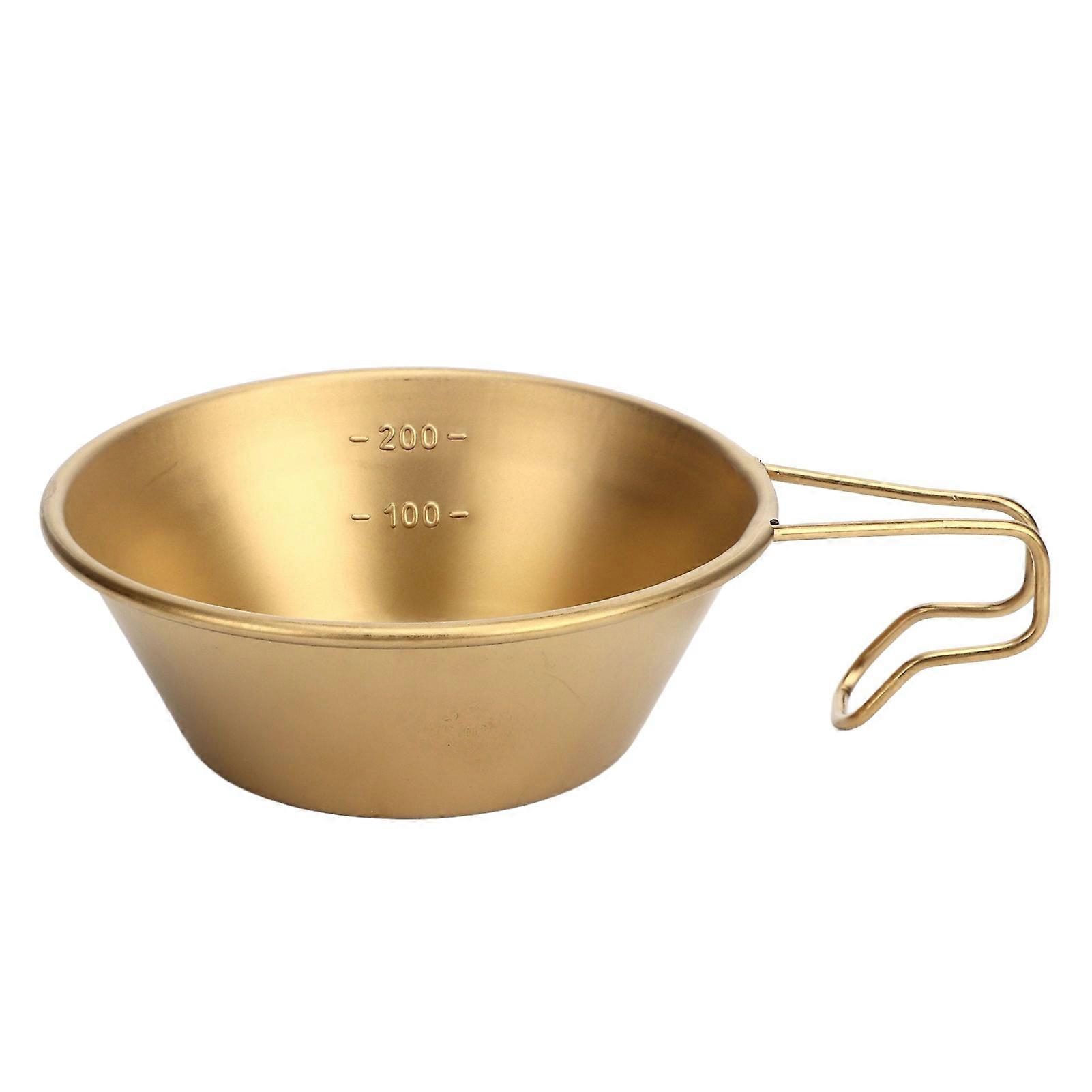 Camping Cup Backpacking Bowl Cup Stainless Steel with Hook Shape Handle for Outdoor Travel Picnic Golden