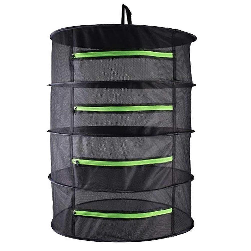 Round Drying Net with Zipper for Camping Black Cloth Foldable and Breathable 4 Layers