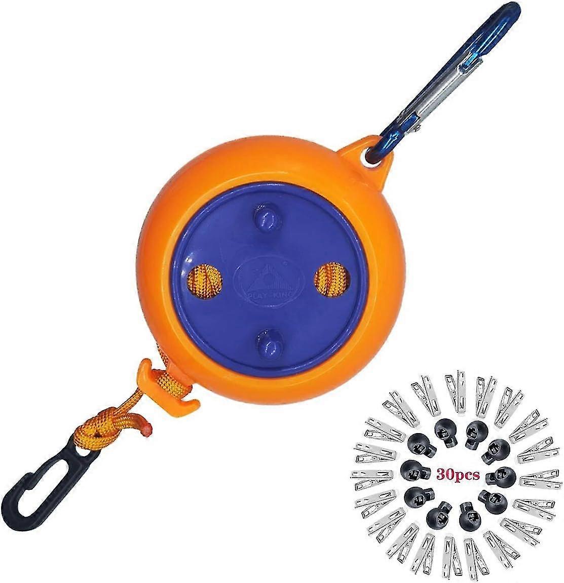 Camping Washing Line, 8 Meters Travel Clothesline Retractable Laundry Rope With 10 Fixed Buckles And 20 Clothespins