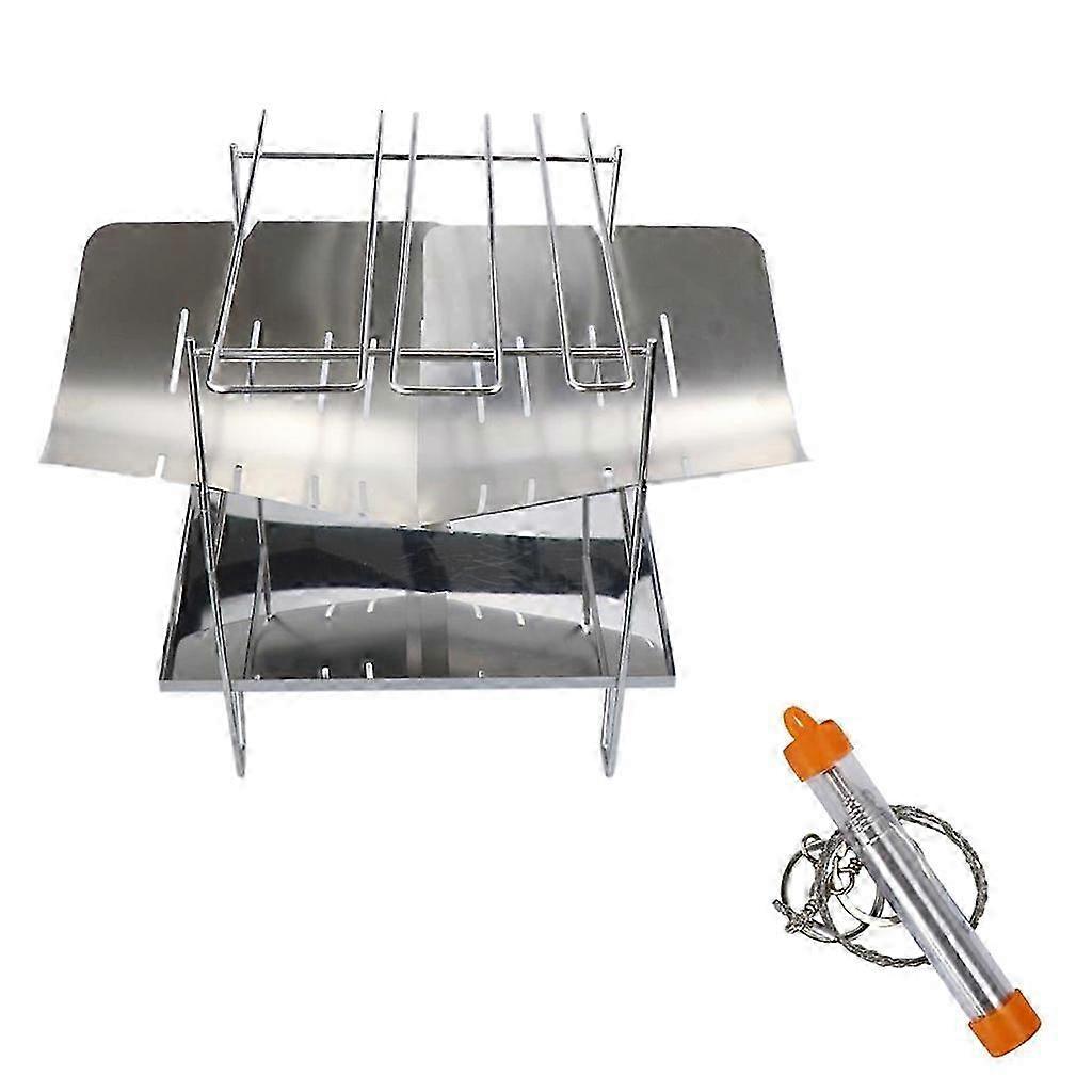 Camping Wood Stove Grill Folding Stainless Steel Firewood Burning Stove for Outdoor Cooking BBQ Picnic-S C-