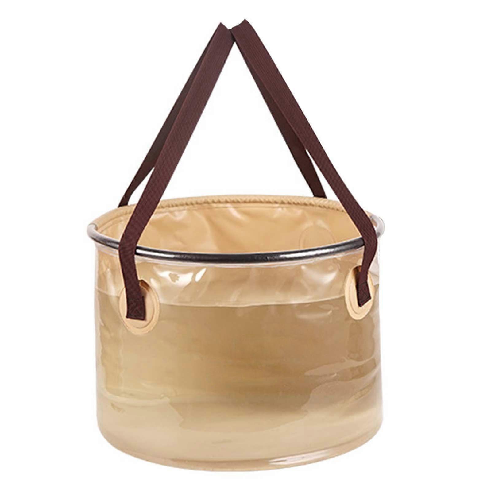 Camping Fishing Bucket Portable Barbecue Dishes Washing 20L/30L Khaki Folding Outdoor Basket, Leakproof PVC Cloth, Lightweight Self-Supporting, Attach