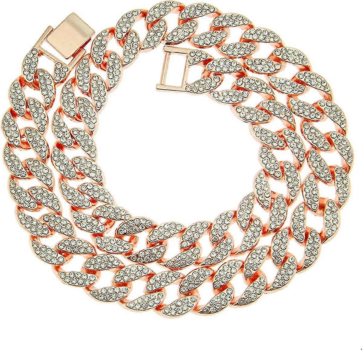 Cuban Chain Necklace Hip Hop Iced Out Rhinestone Choker Necklace For Men Women Fashion Hip Hop Jewelry 16-30 Inch - -