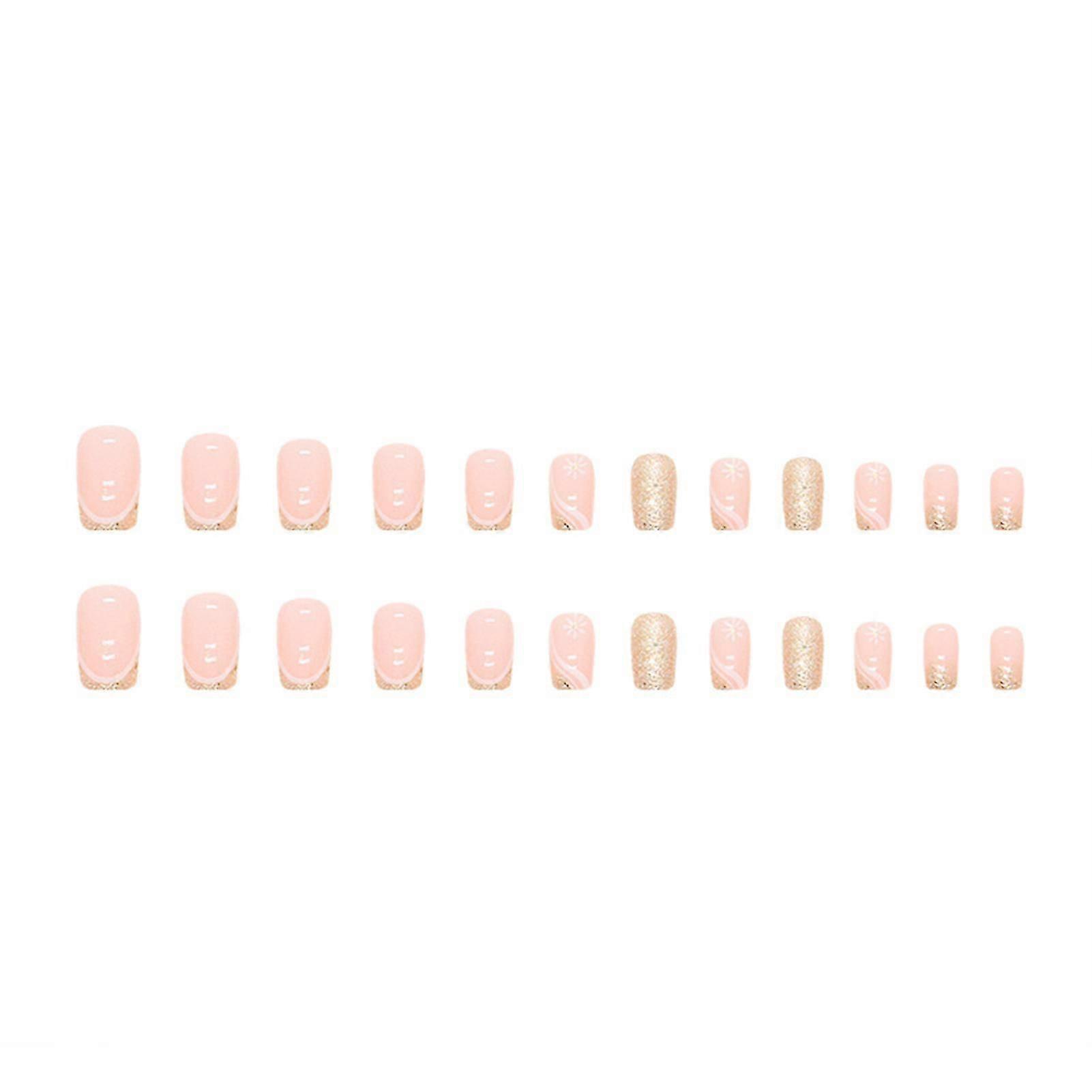 Nude Color Press-on Nail With Glitters Full Cover Glossy Fake Nail With Strong Glue Glue Models