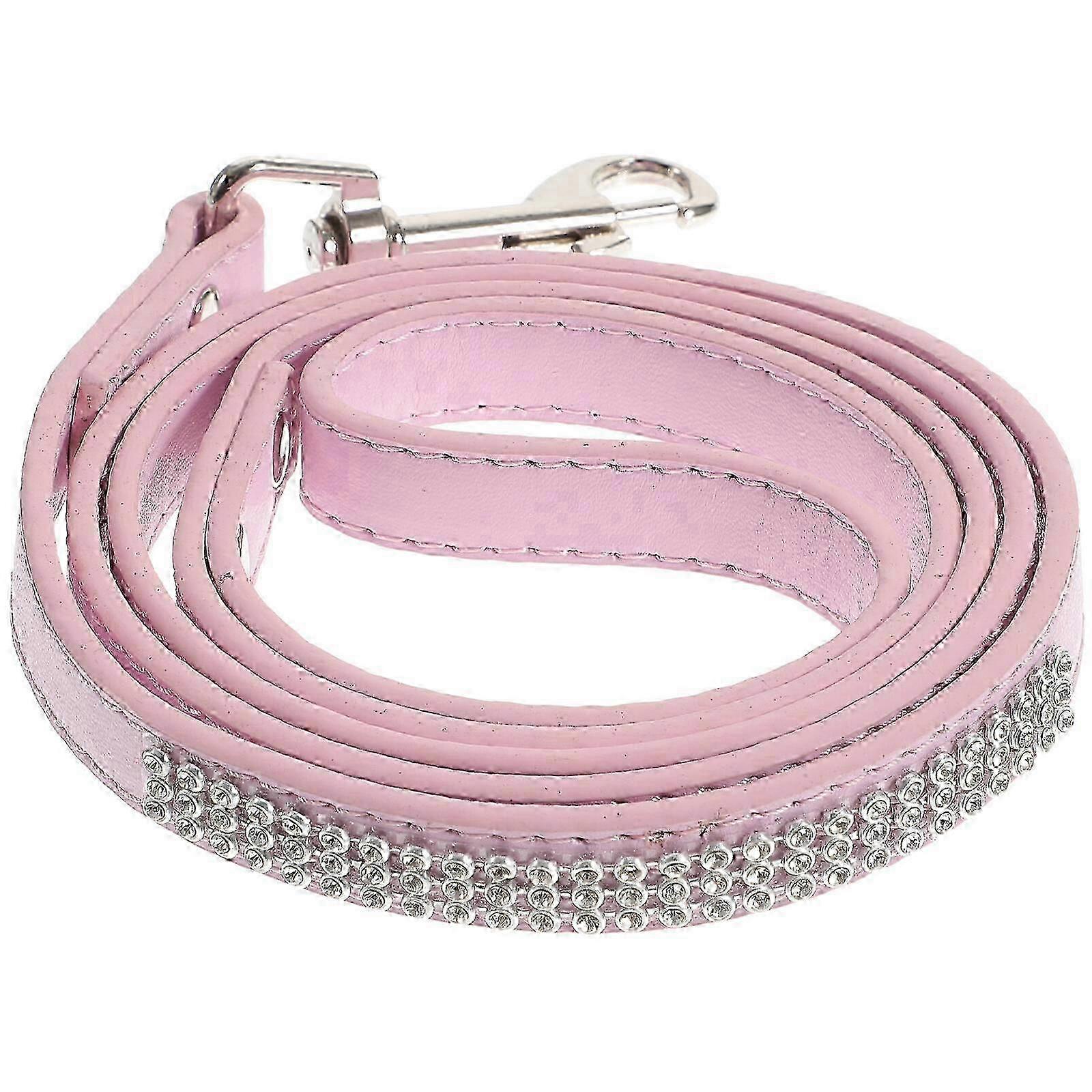 Colorful PU Leather Pet Leash for Training and Walking Cats or Dogs with Sparkly Studded Rhinestones (Pink)