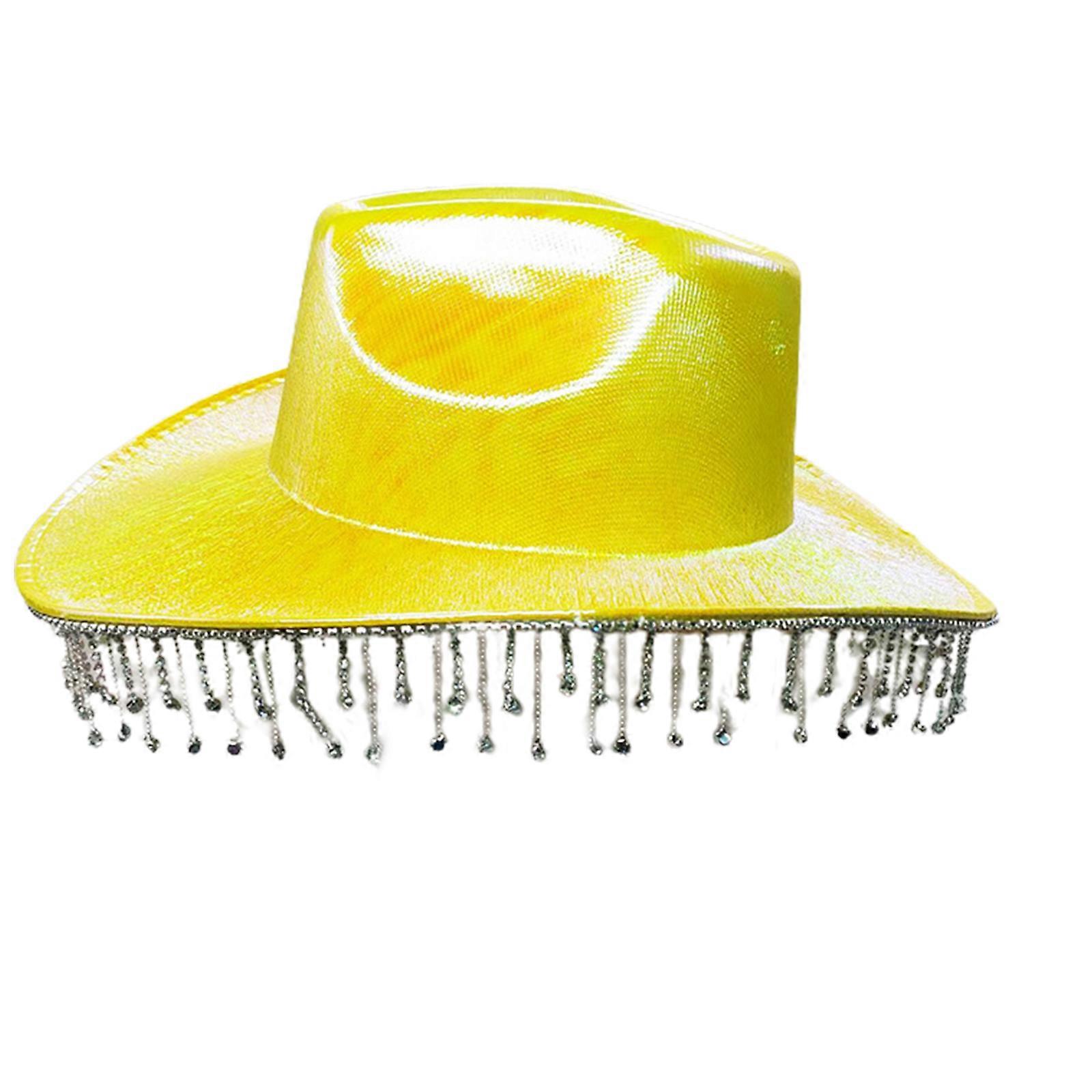 Glitter Cowboy Hat Tassel Fedora Hat for Disco House Cocktail Parties Vacation Sparkly Tassel for Comedian Actor Yellow