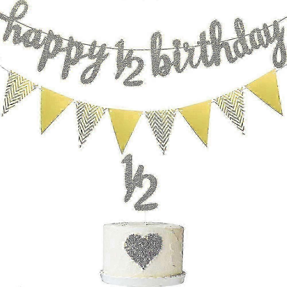 Glitter happy 1/2 birthday half-year-old 6-month birthday banner triangle flag row pull flag suit