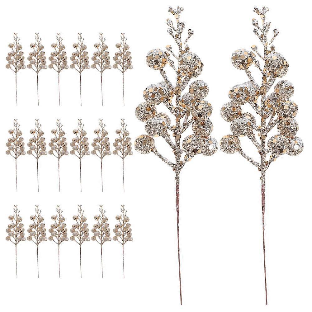 Glitter Berry Picks 20Pcs Artificial Christmas Decorations For Christmas Party In Rose Gold For Festive Decoration