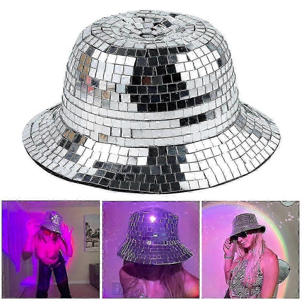 Glitter Mirror Disco Bucket Hat, Full Sequin Disco Ball Hats For Dj Club Bar, Unisex Disco Ball Festival Visor Fisherman Hat