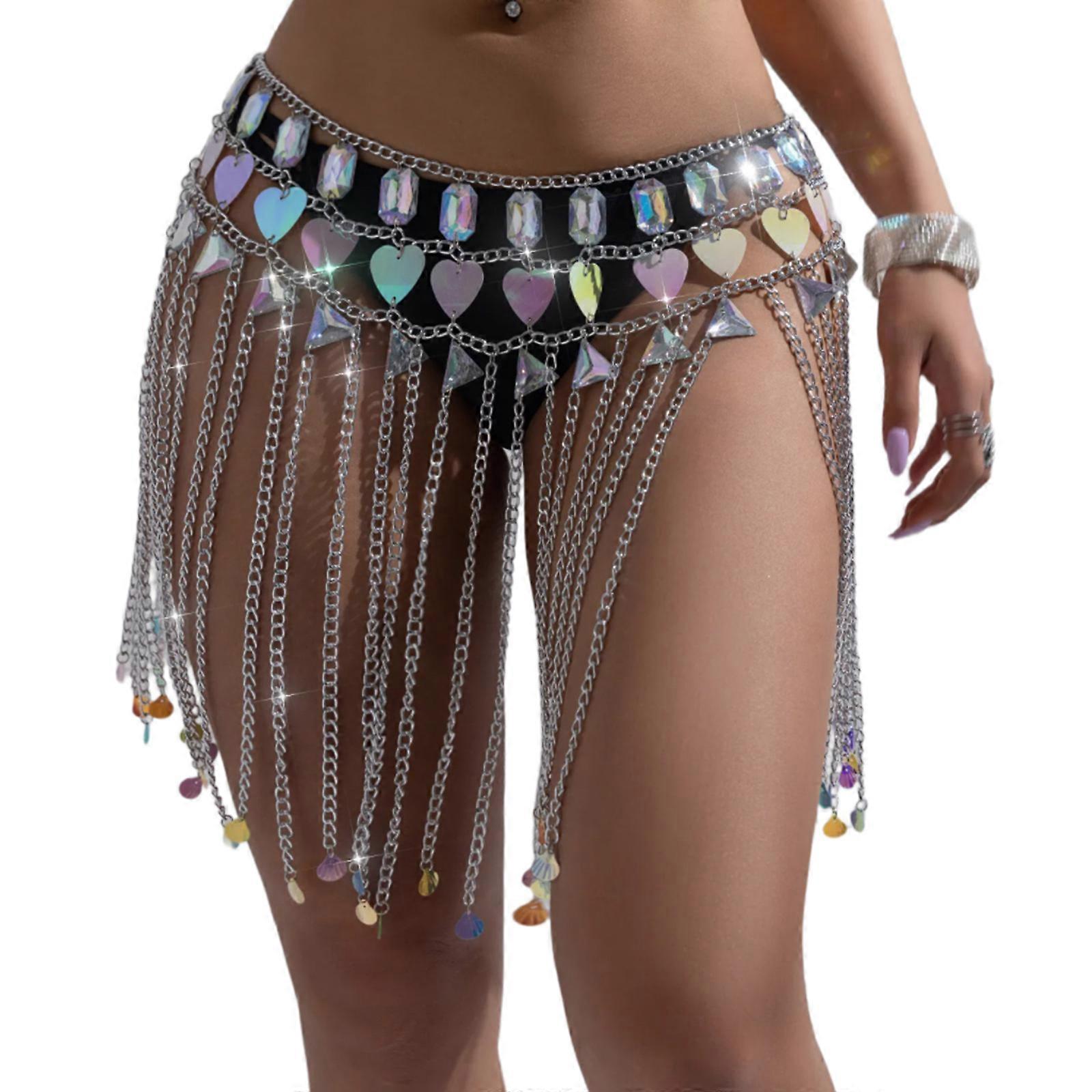 Sparkly Rhinestones Chain Mini Skirt Sleeveless Halter Crop Tanks Top for Club Party Body Jewelry Colorful skirt