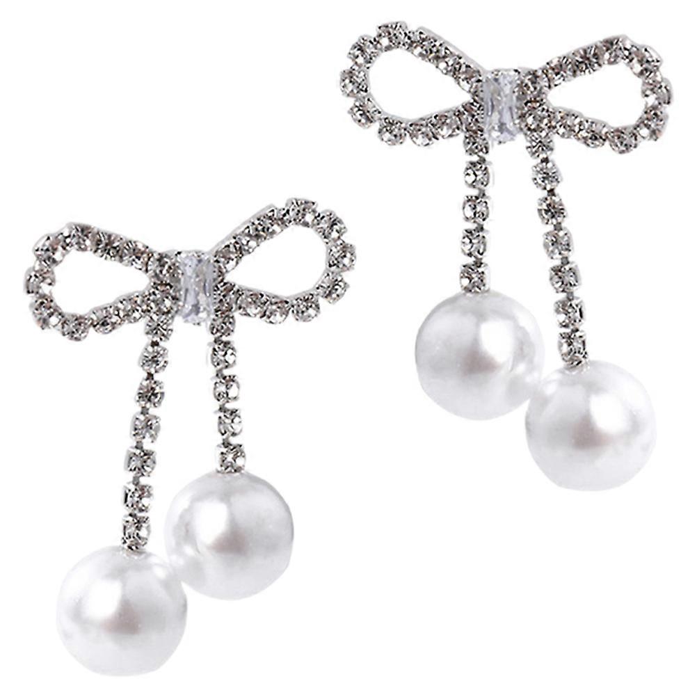 Sparkly Rhinestone Bow Earrings Metal Pearl Earrings For Women Wedding Jewelry 1 Pair