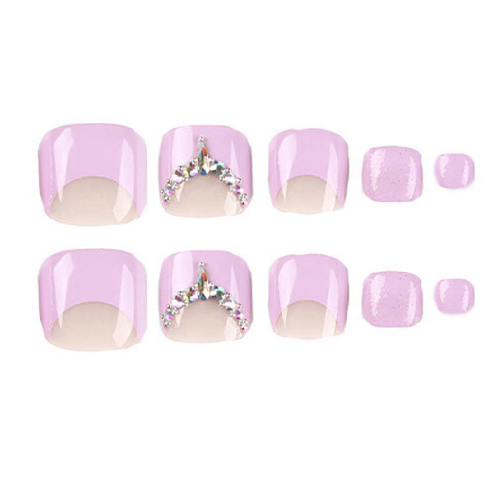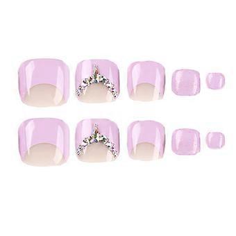 Sparkly Square Fake Toenails Purple Gel Toe Nails Tips With Rhinestones For Woman Decoration Home Toenail Diy