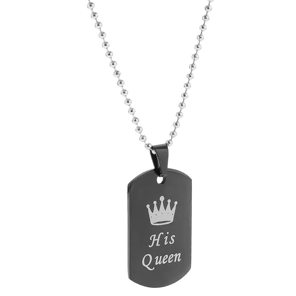 King and Queen Dog Tag Pendant Couple Necklace Lovers Beads Chain Women