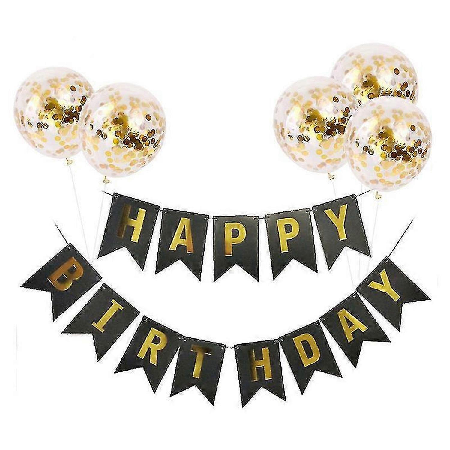 KINZON Joyeux anniversaire drapeau tirant ensemble de ballons paillettes (or noir), dcoration de fte drapeau joyeux anniversaire, dcoration parfaite