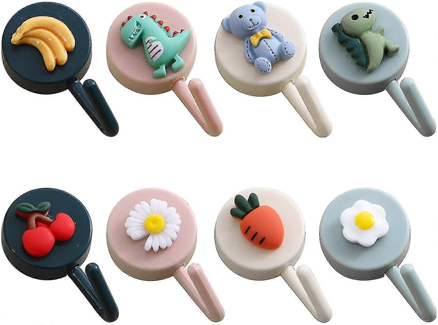 Key Hooks Self Adhesive Hooks Decorative Hooks, Cute Fruits, Animals, Vegetable Currency Wall, For Hangers, Towel Robe Hook, Scarf, Bag (8pcs
