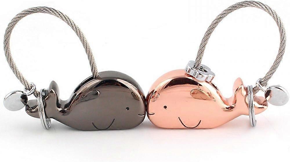 Keychain 1 Pair Whale Shape Couple Keyring with Magnetic Mouth,Christmas Gift for Girlfriend Lover, Zinc Alloy Shiny (Black&Rose Gold2pcs)