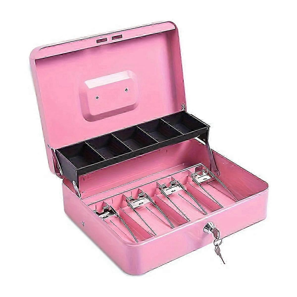 Metal Cash Register With Key Lock-portable Money Organizer Box Convenience Stores Retail Shop Pink
