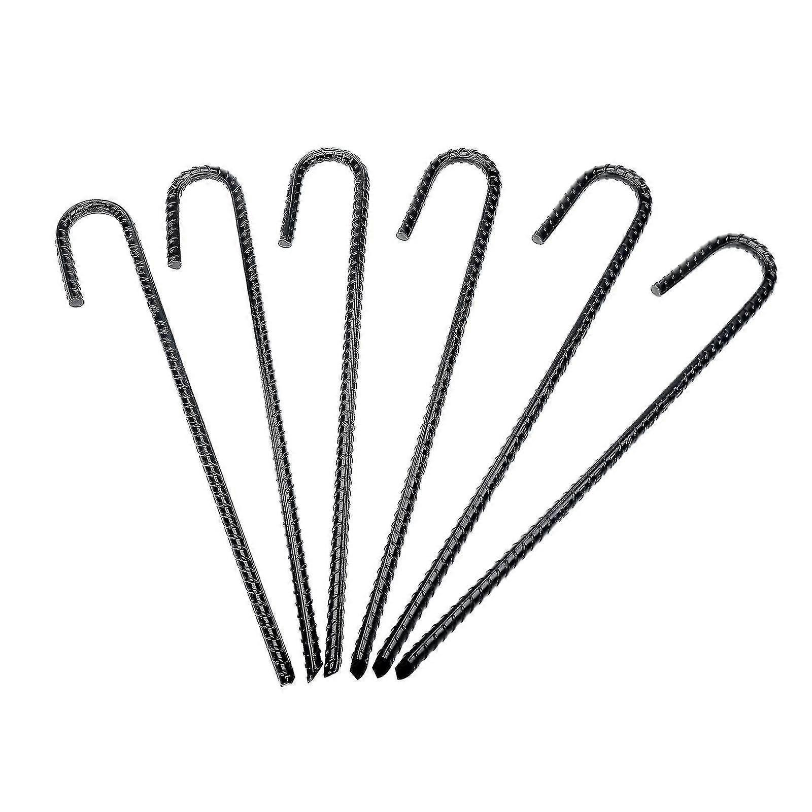 Ground Rebar Stakes, 6 Pcs Heavy Duty J Hook Garden Metal Stake Use For Securing Garden, Camping Tent, Trampolines And Canopies Sheds(black, 12inch)