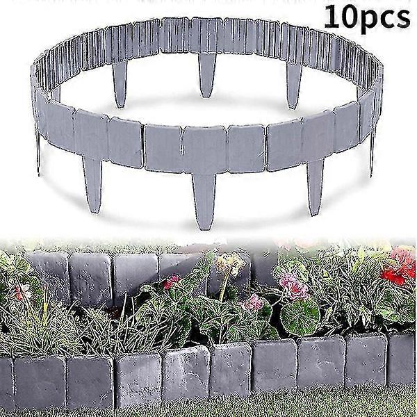 Grass Edging Plastic Garden Edging Strips Stone Effect Plant Border Fence (10pcs, Gray)