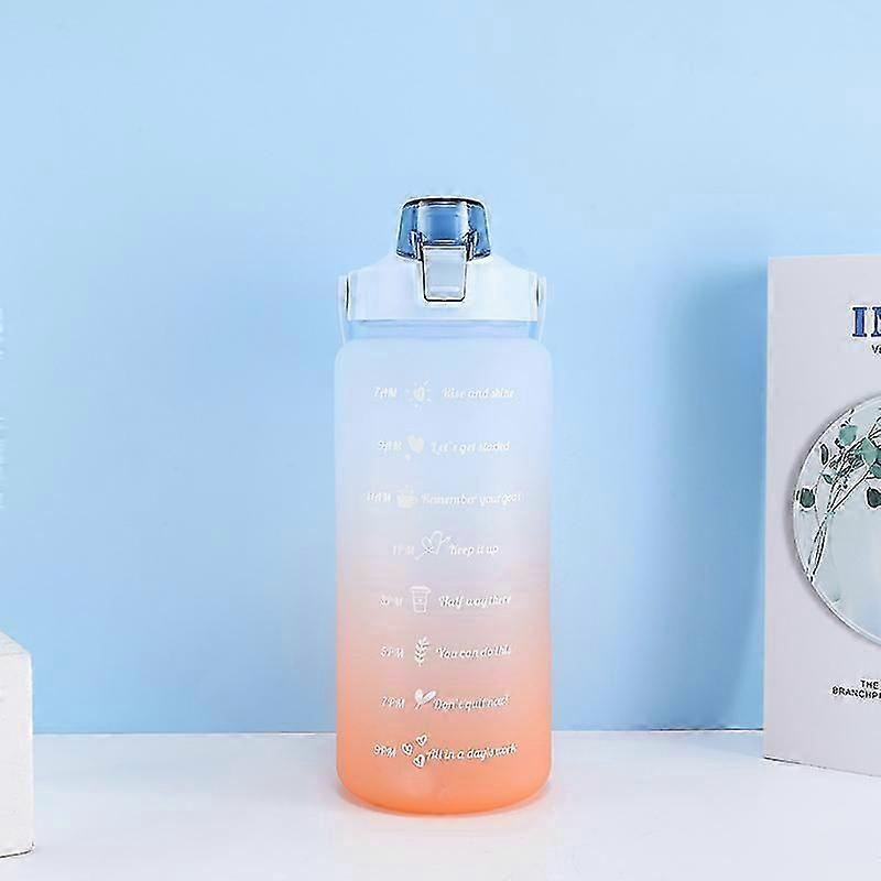 Gradient color large-capacity frosted water cup straw portable outdoor sports water bottle blue 2000ml