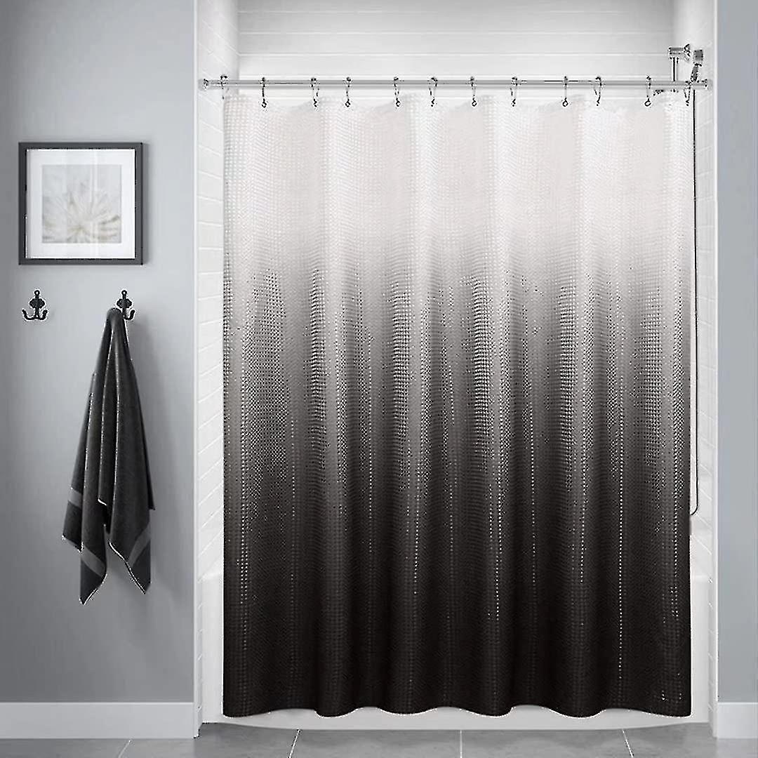 Gradient Black Shower Curtain - Lined, 12 Hooks, Machine Washable, Waterproof (Fabric)