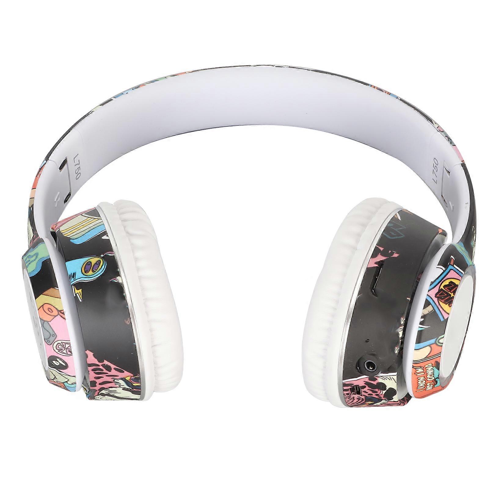 Graffiti Bluetooth Headset HiFi Stereo Built in Mic Support Memory Card Line in Wireless Headphone with RGB Light for PC