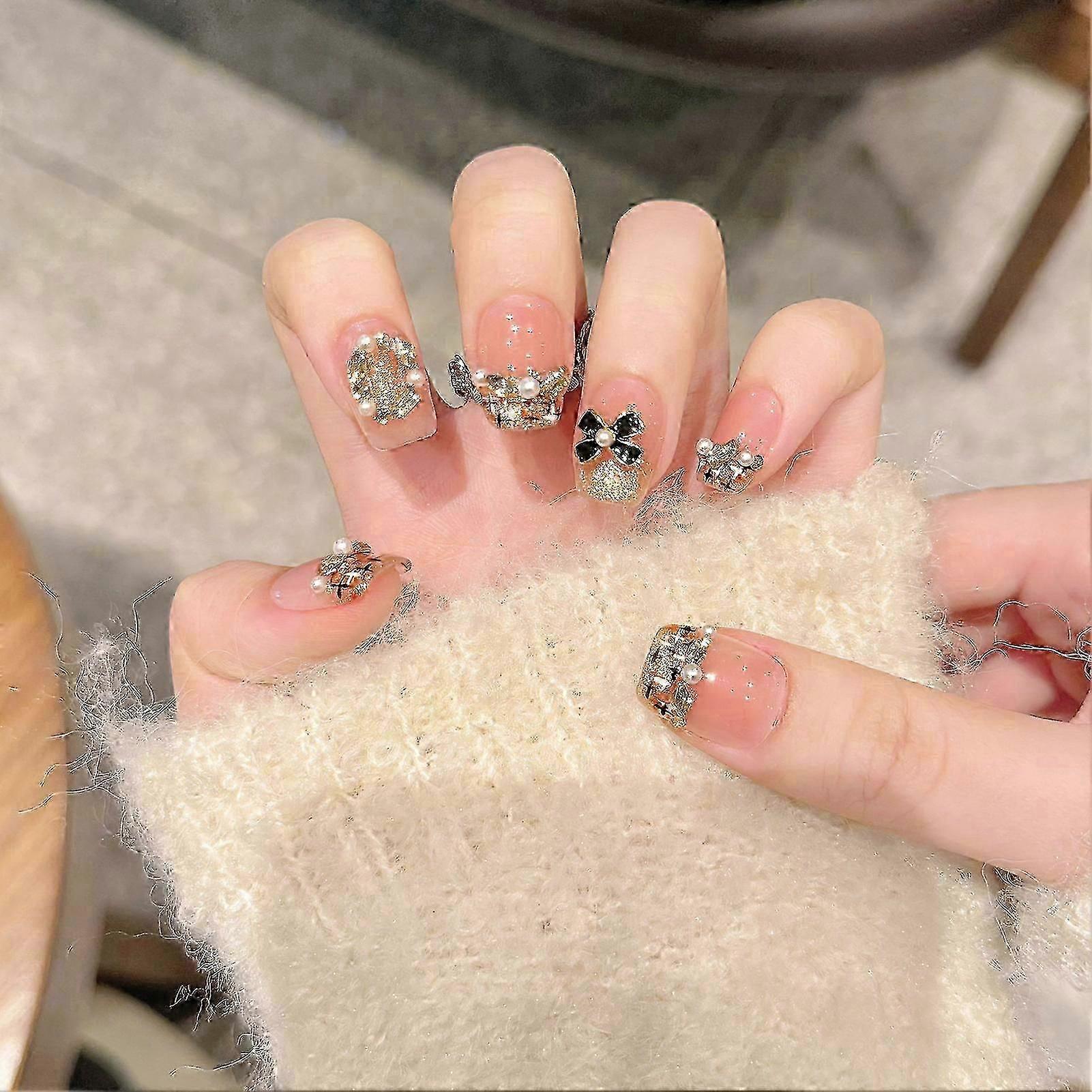 Handmade Pink Press on Nails with Glitter Natural Unbreakable Nail Simple Wear