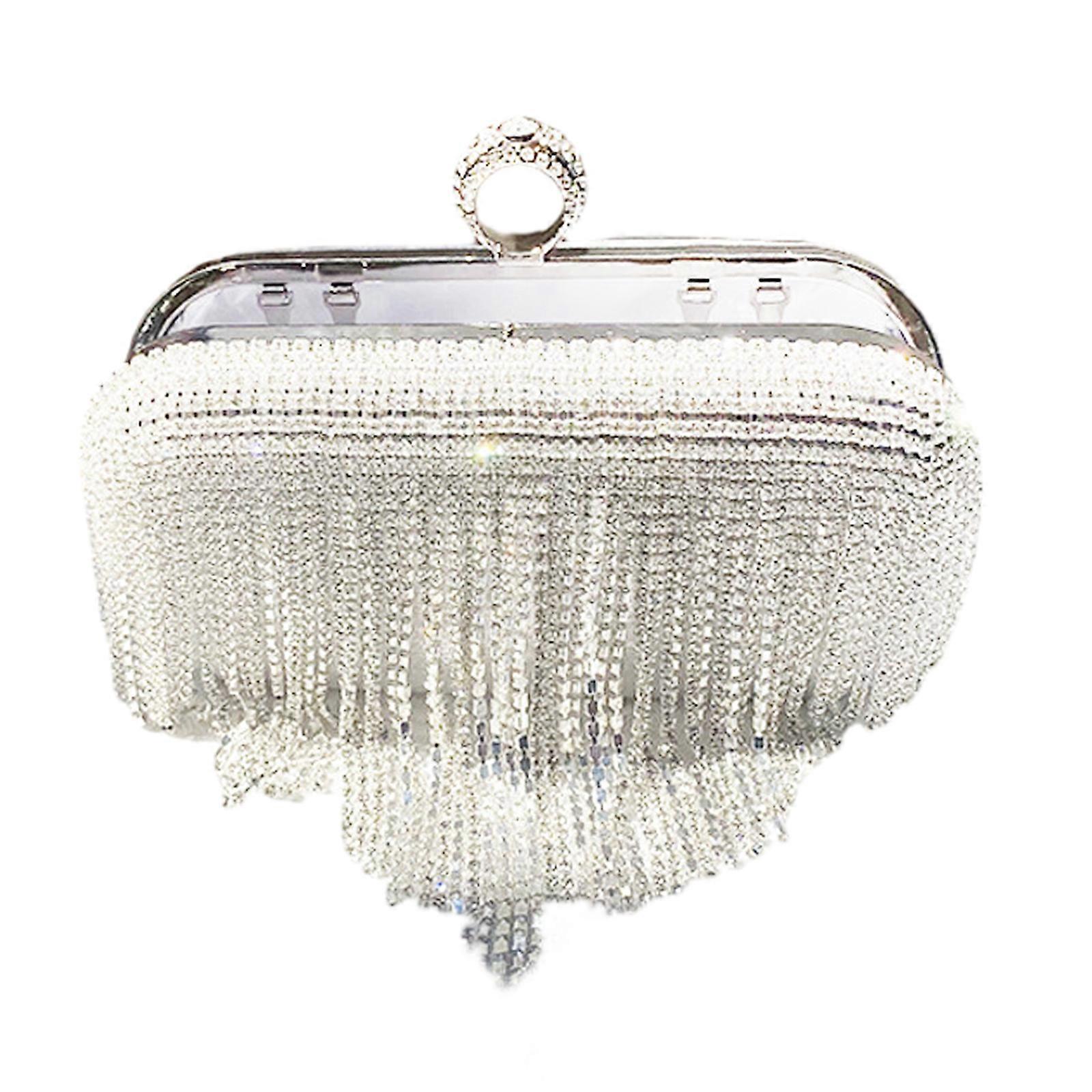 Glitter RhinestoneTassel Evening Bag Party Wedding Clutches Lady Handbag for Women Girl Cocktail Crossbody Shoulder Bag Silver