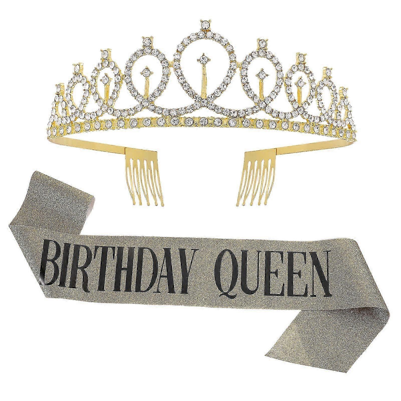 Glitter Rhinestone Birthday Crown Tiara & Sash Set for Girls Party Decor