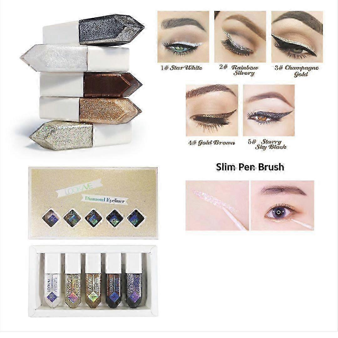 Glitter Liquid Eyeliner Colorful Set, 5pcs 5 Colors Metallic Shimmer White Silver Gold Diamond Eye L
