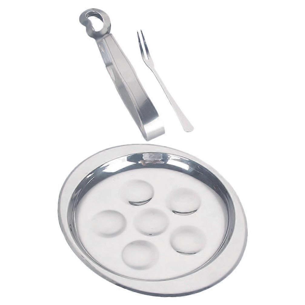 1. This Grill Tools 3Piece Stainless Steel Escargot Dining Set is perfect for home BBQ or restaurant use. 2. It includes a snail clip tong, a 6holes escargot oyster plate tray, and a snail fork, all made of stainless steel. 3. The stainless steel construction ensures durability and easy cleaning. 4. Ideal for serving escargot, oysters and other seafood, it adds a touch of elegance to your dining experience. 5. Whether you're grilling at home or running a restaurant, this set is a great choice for seafood tableware.
