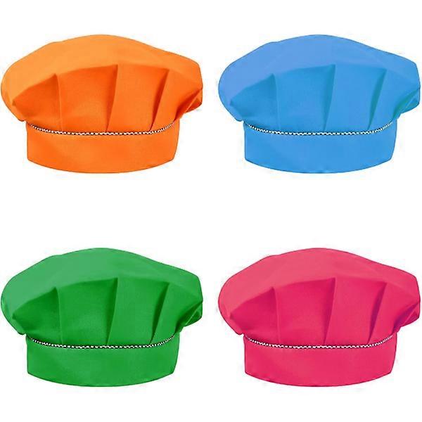 (Green, Blue, Pink, Orange) 4 pcs Chef Hats for Children 3-13 Years