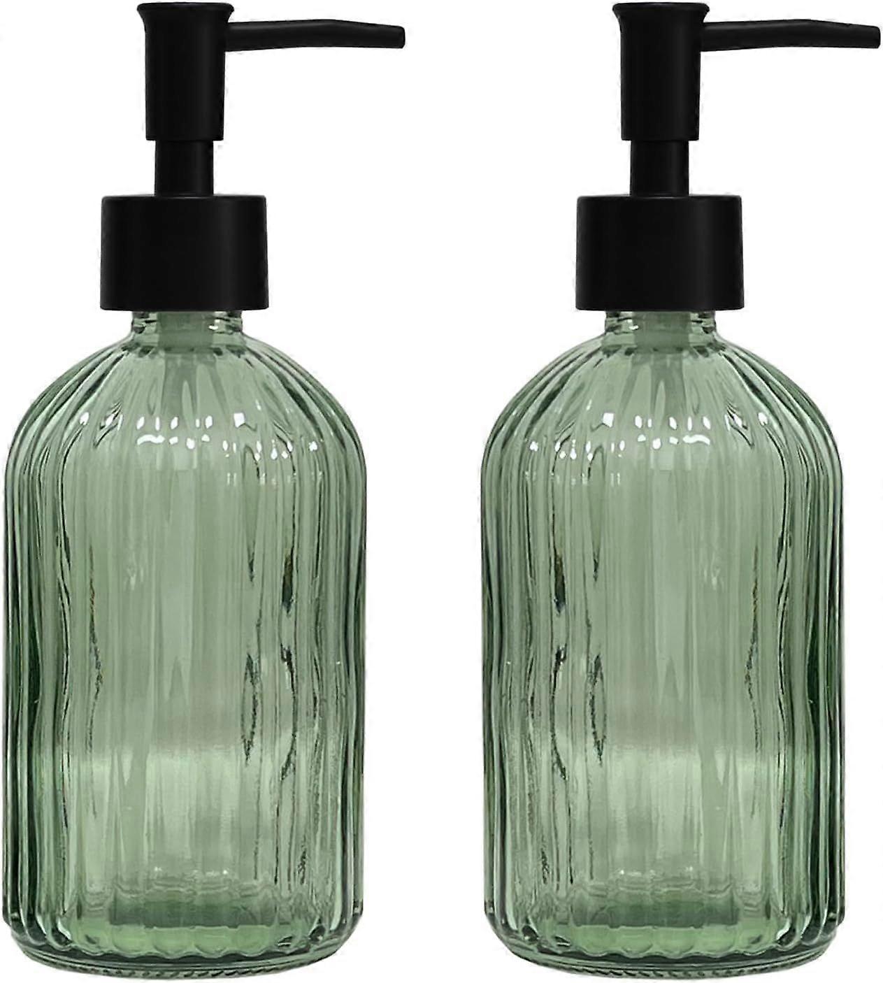 Green Glass Soap Dispenser Set with Black Pump - Refillable Liquid Hand Wash Dispenser - Suitable for Modern Home Decor- Bathroom- Kitchen Counter- Ho