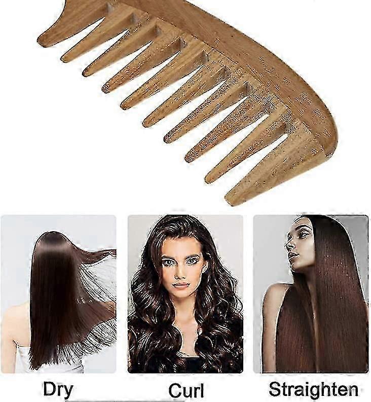 Green Sandalwood Wide-tooth No Static Handmade Comb, Quality Wooden Curls Comb ,wide-tooth Comb(1pc, Wood Color)