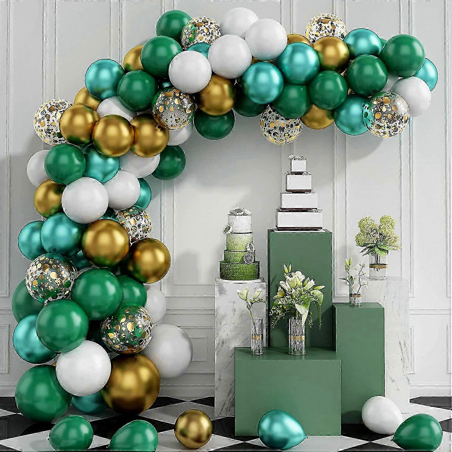 Green Balloon Wreath Arch Kit - 100 Pieces Green White Gold Balloon Arch Kit with Confetti Balloons for Celebrating Boys' Birthday, Baby Sho