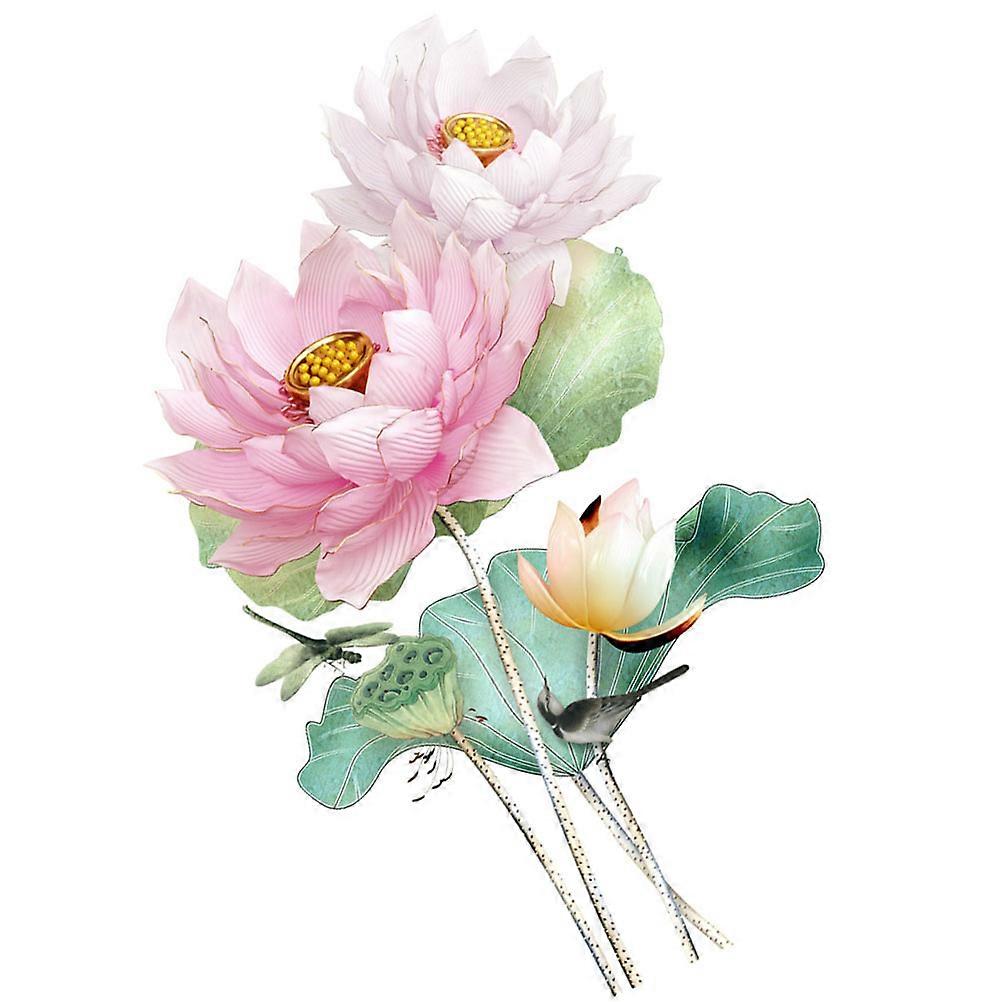Green Plant Lotus Wall Decal Set PVC Removable Floral Sticker for Living Room Entrance Background Home Decor Easy Application Refresh