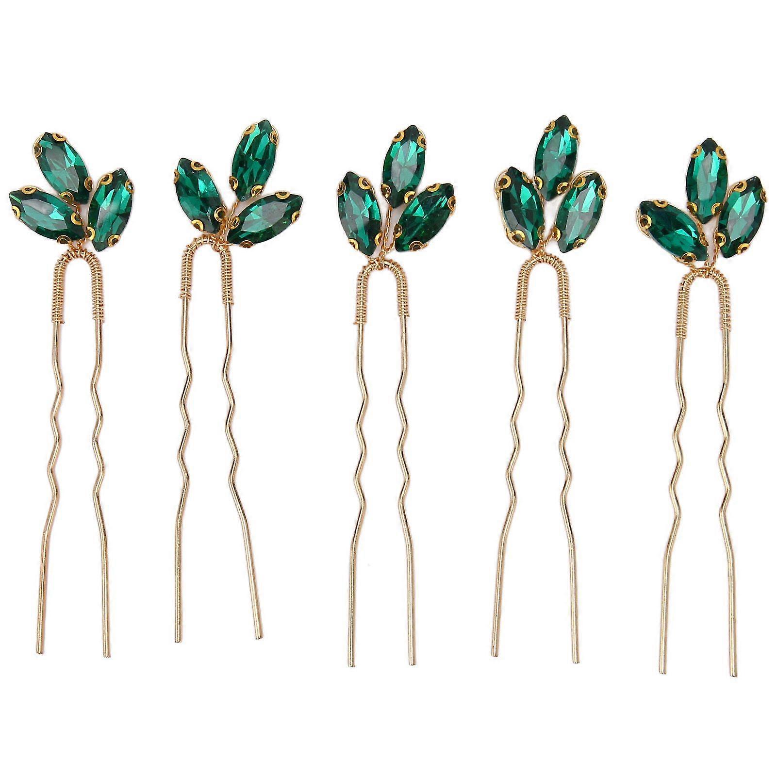Green Rhinestone Hair Pin Vintage Lightweight Exquisite Wedding Hair Piece Hair Jewelry for Bride Bridesmaid 5pcs