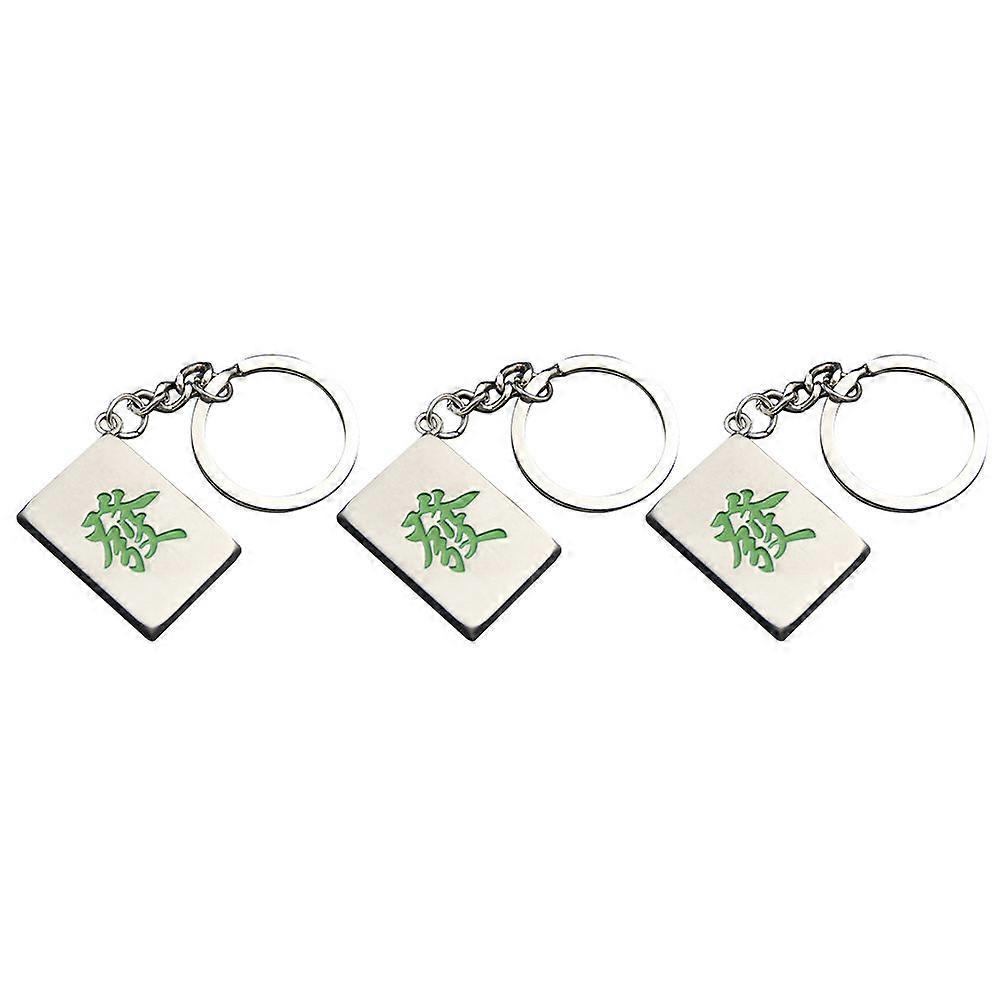 Green Zinc Alloy Mahjong Fortune Keychain for Decoration with Creative Design and Stylish Look 3PCS