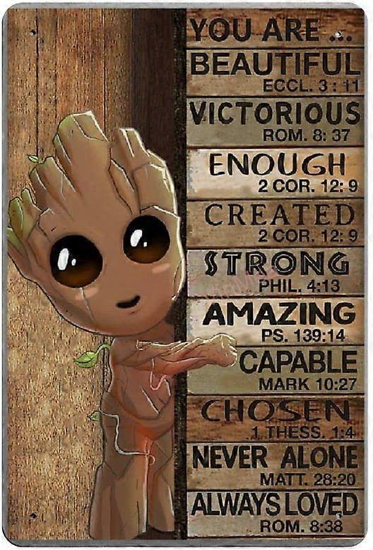 Groot Metal Tin Sign You are Beautiful Wall Decor Comics Poster Vintage Funny Bathroom Bedroom Bar Garage Man Cave Art Decor 12x8 inch